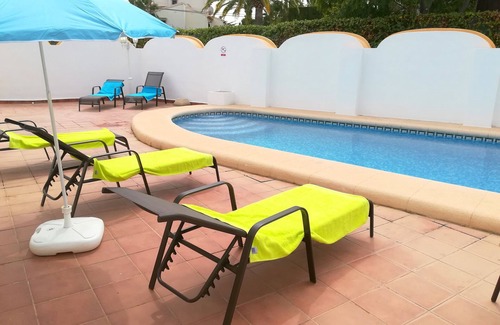 El exterior dispone de piscina privada con escaleras romanas de obra para acceder mejor, barbacoa, mobiliario de jardín y tumbonas para tomar el sol y disfrutar de su estancia.
