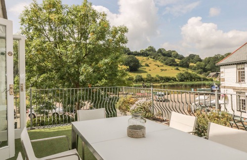 Esta elegante casa de campo que admite mascotas en Calstock tiene vistas al río y puede alojar a cinco personas en tres habitaciones.