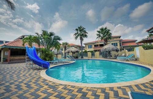 Palma Real es una comunidad cerrada de lujo ubicada en Palm Beach, cerca de la "fila de restaurantes", a solo minutos de las playas, casinos, tiendas y vida nocturna de Aruba. Esta propiedad ofrece 2 piscinas, una casa club, parque infantil y seguridad las 24 horas. Un condominio en planta baja directamente enfrente de la piscina. Hay una sala de estar abierta con una gran mesa de comedor, un cómodo sofá y un televisor de pantalla plana. Internet y cable. El dormitorio principal con baño privado y cama queen se abre al patio trasero. El dormitorio de invitados se puede arreglar con 1 cama king o 2 camas individuales. Cada habitación tiene un televisor. Este condominio puede dormir hasta 4 personas ... Fantástico patio privado con zona de barbacoa completa esta casa de vacaciones. Las características incluyen: lavadora / secadora de tamaño completo, aire acondicionado, calentador de agua caliente de gran capacidad e internet Wi-Fi. ARUBA HOME MINDERS NV, una empresa de gestión de propiedades de servicio completo de primer nivel, Concierge Company. Pregunte por los numerosos servicios que ofrecemos para complementar su estadía y crear unas vacaciones sin preocupaciones.