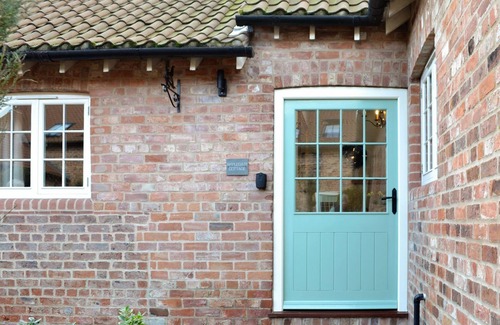 Bathroom: Bath With Shower Over, Heated Towel Rail, Toilet. Air source central heating, electricity, bed linen, towels and Wi-Fi included. Initial fuel for wood burner included, remainder at £10 per basket. Travel cot and highchair available on request. Welcome pack. External utility room with washing machine and tumble dryer (shared with other properties on-site).. Large enclosed lawned courtyard garden with patio, terrace, garden furniture, BBQ and summerhouse (shared with other properties on-site). Private parking for 2 cars. No smoking. Please note: There is a fenced pond in the garden, 100 yards away.. Applegate Cottage is a lovely semi-detached barn conversion and is one of five holiday cottages set around a central courtyard at Holtby Grange with the owner living on-site, just outside the small village of Holtby and only 5 miles from York city centre. Hidden down a long private drive and surrounded by open countryside with far reaching views, this two bedroomed property offers a high level of guest comfort and luxurious extras. The entrance to the property is from the main courtyard which has beautifully trimmed boxed hedges and a koi carp pond. With shared seating, this area offers a real sense of peace and tranquillity. Upon entering the property you are straight into the open plan kitchen/dining room/living room. With a feature brick wall, contemporary wood burner and vaulted ceiling, not to mention the oak kitchen covered with granite worktops, Belfast sink and high end cooking appliances, this property will not disappoint on arrival. The chef in the family will certainly enjoy cooking in this kitchen. The wow factor continues into the master en-suite bedroom. The décor and soft furnishings match perfectly and with excellent beds you are guaranteed a peaceful nights sleep. The house bathroom is immaculate with a shower over bath. Outside there is a large enclosed garden shared between all the cottages offering a shaded wooded area, summerhouse with seating, garden paths and a central pond which is surrounded by a fence.