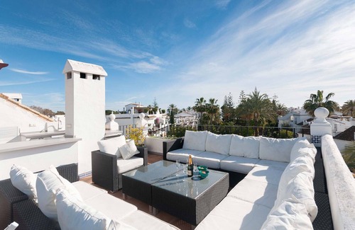 ¿Un toque de lujo? La amplia azotea encapsula todo el encanto de la vida costera. Enmarcada por las majestuosas montañas de la Sierra Blanca, cuenta con todo lo necesario para disfrutar al aire libre: una cocina exterior, una zona de comedor y un área de descanso con cómodos asientos. Sin embargo, la joya de la corona es la piscina privada tipo plunge pool, que aporta una sensación de intimidad y exclusividad. Pero si lo que más valoras es la ubicación, este alojamiento vacacional también cumple con esa expectativa.