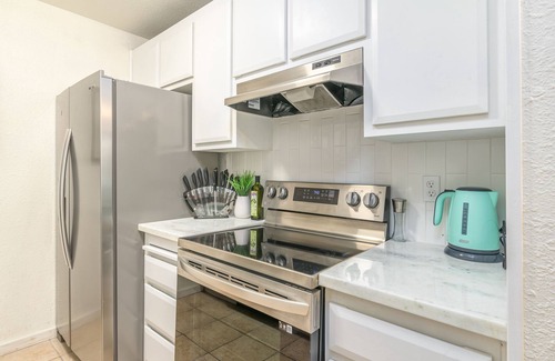 Prepara una comida casera en la cocina, equipada con horno, frigorífico y lavavajillas, además de microondas y utensilios de cocina. El cuarto de baño incluye un secador de pelo, toallas y papel higiénico. Podrás viajar con poco equipaje, porque tendrás una lavadora y una secadora a tu disposición. Otras comodidades de este alojamiento de 2 dormitorios y 2 baños incluyen ropa de cama, aire acondicionado y calefacción.