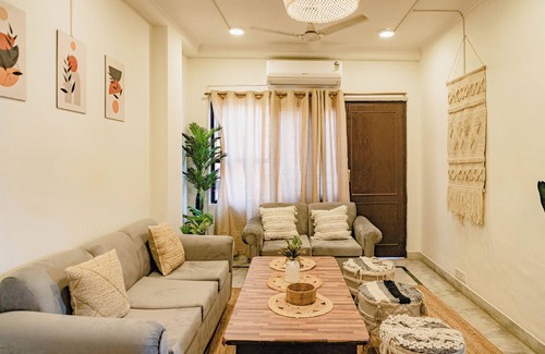 Esta casa de vacaciones de 2 dormitorios y 2 baños está ubicado en Nueva Delhi, una ubicación ideal para explorar los alrededores. A los amantes de la naturaleza y el aire libre les encantará estar a 5 minutos a pie de Parque Deer y a 8min en coche de Lodhi Garden. Puedes conducir 7min hasta Mercado de Sarojini Nagar o 5min hasta Auditorio Siri Fort.