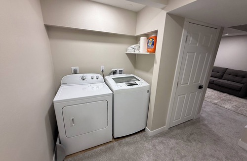 Este alojamiento de 3 dormitorios y 2 baños cuenta con una zona para barbacoas, aire acondicionado y escritorio. Disfruta del wifi, de la televisión y de los videojuegos. El cuarto de baño incluye un secador de pelo, toallas y papel higiénico. La cocina está equipada con horno, placa de cocina y frigorífico, además de cafetera y tetera, máquina de hielo y microondas. Y como podrás aprovechar la lavadora y la secadora, no te hará falta llevar mucho equipaje. Otras comodidades incluyen ropa de cama, una tabla de planchar, calefacción y una silla de oficina.