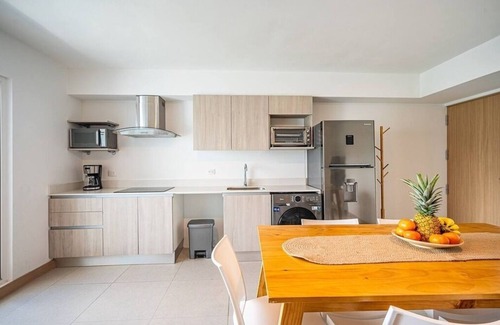 Este lujoso apartamento dispone de tres habitaciones, una suite con cama king, tv y baño, una con cama queen y otra con cama matrimonial, todas con colchones de alta calidad para disfrutar de un buen descanso.