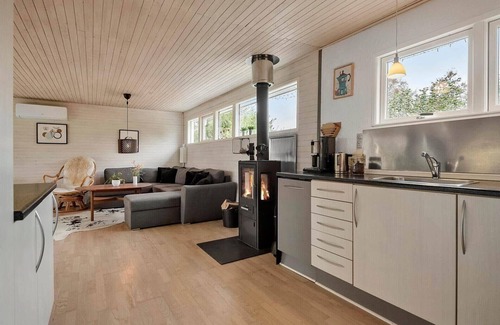 The holiday home in Amstrup, East Jutland, is ideally situated just 250 meters from the nearest beach, making it a perfect retreat for those seeking sun and relaxation. The property is nestled on a spacious 1,400 m² plot, which offers ample outdoor space for leisure activities. Within a short drive of approximately 6 kilometers, guests can access the nearest shopping facilities, ensuring convenience for daily needs. The surrounding area boasts a variety of attractions, including scenic coastal paths and charming seaside towns, perfect for day trips and exploration. For guests arriving by car, the location is easily accessible, providing a seamless transition to vacation relaxation. The cozy interior, equipped with amenities like a fireplace, washing machine, and dishwasher, enhances the overall comfort of the stay. This accommodation is suitable for up to 6 adults and welcomes 2 pets, making it a great getaway for families or small groups.