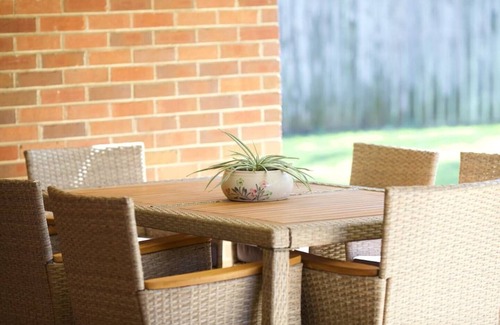 Relájate en el jardín o tómate algo en el porche o patio de esta casa de vacaciones de 168 m². Para cambiar un poco, entra y disfruta del wifi gratis y de la televisión.