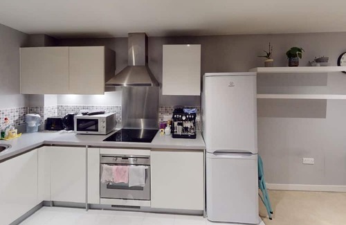 Newly furnished flat having a spacious bright bedroom for two people, featuring a super king-sized bed, standing mirror, two table lamps and two bedside tables, portable wardrobe, underneath four bed storages and chest of four drawers. For additional one more person it is possible to use the sofa bed in the living room if you prefer.Open living room with a lovely balcony, and one bathroom having a bath tub with a shower filtered water. Located on the 3rd floor up an elevator, via a secure entrance. Wifi is Hyperoptic and TV is free logging in to your own Netflix, YouTube and other apps' accounts. Lovely kitchen with fridge and freezer, coffee machine, microwave, dishwasher, toaster, kettle and filtered Brita water and various of plates, bowls and kitchen cuttleries. If you would like to reserve my allocated secure car parking space, extend your stay, or use the flat for photographing or any business activities, please contact me through Airbnb. These services come at an additional cost; please ask me for further information.For one additional guest, please inform me when you book the flat so that the necessary arrangements can be made before your arrival.All require an additional cost.Please use the large grey bin for recyclable waste and the small black bin mounted inside the kitchen cupboard under the sink for non-recyclable waste. If you need bags for those please check the pics in the additional pictures. Kindly leave the flat tidy. Check-in time is flexible, and check out by 10:00 AM. You will be able to access the property by using the Smart Master Lock and self check in and check out. To ensure everyone's safety, we have a no-smoking, no drug and no party policy, "No Outdoor Shoes Inside", and all guests must be registered and identity verified in the booking. Bed linens and towels provided, along with a hair dryer inside the left bedside table in the bedroom.