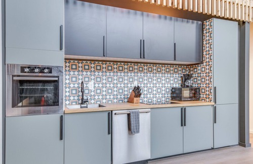 Este alojamiento de 2 dormitorios y 1 baño cuenta con aire acondicionado y escritorio. El cuarto de baño incluye un secador de pelo y toallas. La cocina está equipada con placa de cocina, frigorífico y lavavajillas, además de cafetera y tetera, microondas y utensilios de cocina. Podrás viajar con poco equipaje, porque tendrás una lavadora y una secadora a tu disposición.