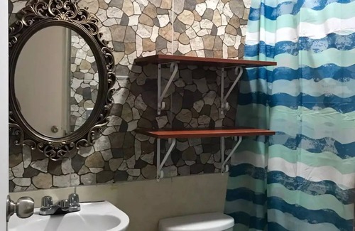 El baño; cuenta con ducha y cañería que regula temperatura ( frío, tibio, caliente).
