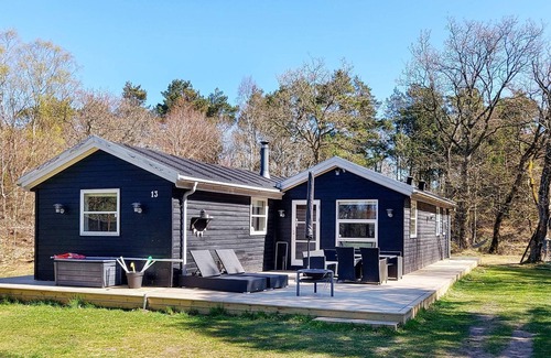 Casa de vacaciones ubicada en el bosque en Als Odde con una parcela grande y aislada de 3500 m & # 178;. La casa es luminosa y está bien amueblada, con sala de estar con estufa de leña en conexión abierta con la cocina y el comedor y con acceso a una gran terraza, que rodea la casa con varias áreas de descanso. Hay canales de televisión daneses, así como el canal alemán ZDF. 3 habitaciones con cama de matrimonio y baño con hidromasaje. Gran césped con mucho espacio para juegos de pelota y juegos, así como un arenero y columpios para los niños. No se alquila a grupos de jóvenes.