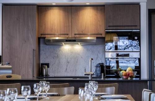 Superficie aproximada de 230 m². Algunos en duplex. Nivel 0 : Estancia con sofá-cama, estufa. Habitación con bañera, ducha, cama doble, WC. Habitación con ducha, cama doble, WC. Habitación con bañera, 2 camas twin, WC. Habitación con ducha, 2 camas twin, WC. Kitchenette con servicio para preparar la fondue, aparato para preparar la Raclette, caldera, 2 cafeteras (filtre et Nespresso Magimix), Bodega, horno multifunciones, tostador, lavavajillas, micro-ondas, placas a inducción, refrigerator-congelador. WC independiente. Balcón. Nivel 1 : 3 habitaciones con bañera, ducha, 2 camas twin, WC. Sauna con ducha.