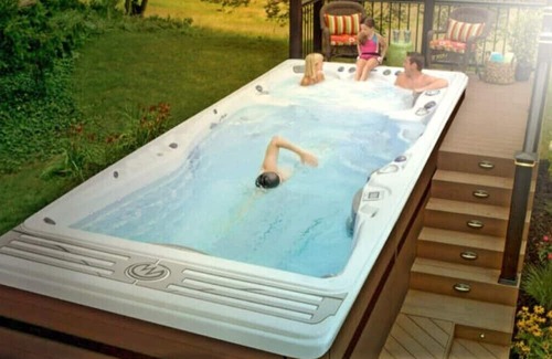 Step into relaxation with our brand new 24 ft Swim Spa, ideal for a refreshing swim or a soothing soak with massaging jets. Whether you're an early riser looking for a morning dip or want to unwind after a day of exploring, the Swim Spa is the perfect spot.