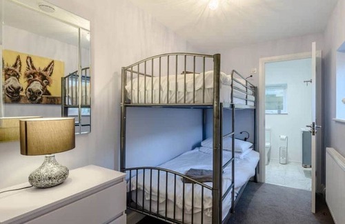 Newly built garden lodge, in lovely Dorset with many top reviews. An Ideal base in the heart of Dorset to relax & explore from. Great beaches, attractions & pubs all around. 1st bedroom has a king-size bed, 2nd bedroom has bunk beds, & then we have a pull out sofa bed for the fifth & sixth guest in the lounge, then a z-bed for guest number seven, both bedrooms have their own en-suite shower & toilet. Outside patio, private HOT TUB, breakfast bar, off road parking, lovely sun terrace, what a great place to ‘Hideout’ !