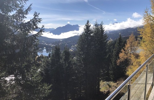 57 m2. Más información del proveedor: Upper of two 3½ -room apartments in a chalet, entrance through the carport, lobby with skiroom and door to bathroom with toilet, bathtub and washing machine, main entrance to the apartment with open loft, two separate bedrooms, a gallery with two beds, living room with fire place, half-open kitchen with large dining table, terrace with chairs and table, open to the garden. The property is at the end of a private road, absolutely quiet and safe for children. Wonderful view over the entire valley, the Valbella-Stätz ski slope can be reached on skis (100m away).