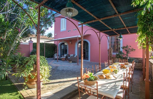 Sumérjase en el encanto de esta elegante propiedad y disfrute de unas cómodas vacaciones en sus amplias habitaciones. Póngase cómodo en los numerosos rincones acogedores y cene en compañía en la acogedora mesa de comedor. Pase horas de convivencia en la cocina, amueblada con cariño, y dé rienda suelta a su creatividad preparando especialidades italianas.