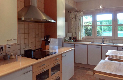 Hay una piscina privada, jardín cercado, terraza y barbacoa de piedra ideal para una noche culinaria. La casa también ofrece una cama para niños y una silla alta.