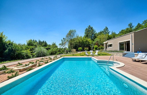 La lujosa Villa Sanda está situada en las afueras de un tranquilo pueblecito rodeado de los fragantes bosques mediterráneos de la encantadora campiña de Istria. Es un alojamiento muy confortable, con mucho espacio e instalaciones excepcionales que disfrutarán tanto niños como adultos. La villa consta de dos zonas separadas. Los cuatro dormitorios, espaciosos y elegantemente amueblados, se encuentran en la casa principal. Uno de ellos se encuentra en la planta baja y los otros tres dormitorios están en el piso de arriba, con un televisor de pantalla plana y un cuarto de baño bellamente decorado. En la planta baja de la casa principal hay un espacio elegante y luminoso dividido en una relajante zona de salón, comedor y cocina. Los colores y texturas naturales y suaves de los muebles de alta calidad y la acogedora chimenea crean un ambiente cálido y agradable, mientras que la gran TV de pantalla plana y la Playstation proporcionan entretenimiento adicional. Unas amplias puertas correderas de cristal dan acceso a la terraza exterior, donde le esperan una atractiva piscina climatizada con energía solar y unas relajantes tumbonas. También hay una logia a la sombra con una zona de comedor al aire libre y una barbacoa de obra para disfrutar de largos almuerzos o cenas románticas bajo las estrellas. El elegante cobertizo de jardín completa la zona exterior. Podrá disfrutar de una relajante zona de bienestar con una sala de fitness bien equipada, bañera de hidromasaje y sauna, así como de una sala de juegos con dardos, billar y futbolín. También hay un parque infantil, ping-pong, baloncesto y voleibol, así como 4 bicicletas para explorar los alrededores. Hay algo para todo el mundo, sea cual sea la temporada. La casa está rodeada por un jardín muy bien cuidado, con grandes extensiones de césped y árboles que dan sombra. Disfrute del aroma de las hierbas mediterráneas y de la belleza de los macizos de flores, tan elegantes como la villa. La villa ofrece un entorno idílico donde podrá disfrutar de la naturaleza en su máxima expresión. Esta hermosa villa se encuentra en el pequeño pueblo de Snasici, a sólo 5 km de Labin. Encaramado en su colina sobre la mágica costa de Kvarner, Labin es el centro histórico y administrativo de Istria oriental. La zona es un paraíso para los amantes del arte y la historia, con su rico patrimonio cultural y arquitectónico. Las empinadas y sinuosas calles del casco antiguo ofrecen palacios históricos bien conservados, numerosas galerías de arte y estudios, así como diversos festivales de jazz y música clásica durante los meses de verano. La ciudad cuenta con excelentes restaurantes de pescado, con deliciosos productos locales, así como acogedores cafés donde disfrutar de un ambiente relajado. La ciudad costera de Labin es Rabac, un antiguo pueblo pesquero, hoy popular destino turístico rodeado de una gran variedad de hermosas playas de guijarros.