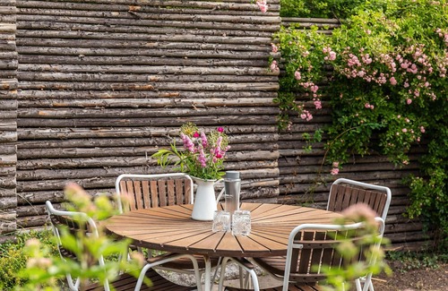 Esta casa de carácter le da la bienvenida con un ambiente acogedor y atención al detalle. Los grandes ventanales dejan entrar mucha luz natural en las zonas de estar, los paneles de madera crean un ambiente acogedor y en los días fríos puede encender la estufa de leña blanca. Relájese aquí leyendo, charlando o escuchando música y organice sus vacaciones como desee.