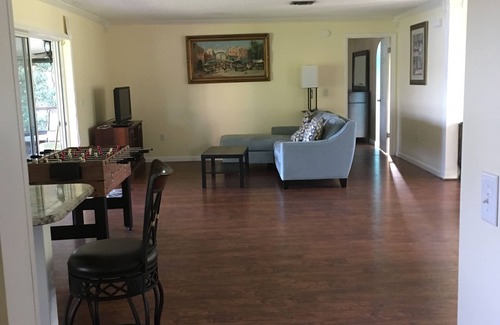 Acogedora y confortable casa de 3 habitaciones y 2 baños con vista al lago; con plano de planta abierto, chimenea de pared. Vecindario orientado a la familia, muy tranquilo y pacífico; pero cerca de entretenimientos, iglesias, restaurantes y parques. Barbacoa en el patio trasero. Relájese en el patio cerrado con vista al lago; o tome un paseo de 40 minutos a la playa de Daytona, la playa de New Smyrna o la costa nacional de Canaveral.