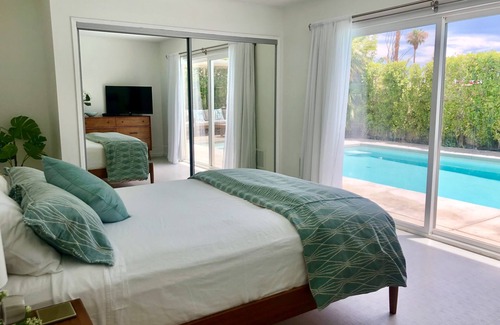 Este bungalow tiene una planta grande. Tiene una gran sala de estar abierta con un montón de espacio para relajarse dentro y por fuera. Hay 4 dormitorios, incluido el principal que da a la piscina privada. Es un refugio privado. Hay 2 cuartos de baño. La cocina es nueva y moderna. La piscina es enorme (14 'x 35') y dispone de calefacción solar. Hay un gran spa para relajarse. El jardín delantero es privado y tiene un área desértica y un área para sentarse y es un gran lugar para ver el atardecer, el patio lateral tiene césped y un área de comedor al aire libre iluminada con luces de cuerda y el patio trasero tiene la piscina y la terraza junto a la piscina y la pérgola con Muebles de gran tamaño. No hay ruido de tráfico y hay vistas de las montañas de la zona. Es un barrio muy tranquilo y pacífico y tenemos vecinos maravillosos. La ubicación es excelente ya que está a sólo 6 millas del centro de Palm Springs. El estilo es de mediados de siglo con 1.440 .feet cuadrados de espacio habitable en el interior, y un montón de que es 7500 sq. Pies. El interior fue diseñado por un arquitecto de interiores educado en UCLA. La piscina se limpia dos veces por semana.