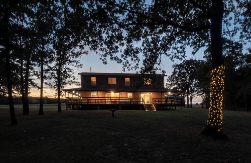 35 private acres with hiking trails, fishing pond (catch & release), zipline, obstacle course, playground, cornhole, horseshoes, fire pit, outdoor dining, and outdoor seating for stargazing.