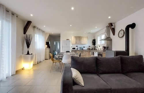 Pase unas agradables vacaciones en familia en esta casa de vacaciones independiente a la vez que moderna. Llegue aquí con su familia y disfrute de un alojamiento bellamente amueblado que cumplirá todos sus deseos. Después de días llenos de acontecimientos, podrá relajarse aquí, encender la estufa y preparar juntos sus platos favoritos. El amplio jardín ofrece mucho espacio para que sus hijos jueguen al aire libre y le invita a tomar sus comidas al aire libre. Juegue una partida de ping-pong y termine las veladas en compañía de los suyos.