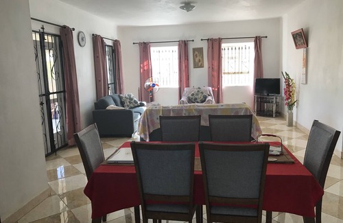 Mi residencia está ubicada en el corazón de un centro turístico en Mauricio, a solo unos minutos a pie del océano. Pongo a su disposición una villa en planta baja totalmente independiente que incluye: 3 dormitorios grandes, 2 baños, 1 cocina grande totalmente equipada, 1 gran salón-comedor y 1 jardín de 3000 m². Posibilidad de apoyo para el traslado entre la residencia y el aeropuerto: 50 euros por viaje.