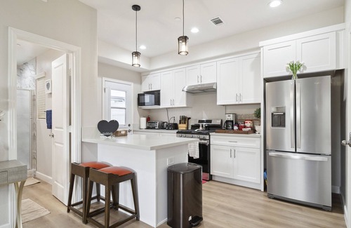 Step inside our fully equipped home, complete with high-speed Wi-Fi for seamless connectivity. Upon entry, be greeted by a bright and airy living area with an upscale dining table and a 60-inch 1080p smart HDTV, seamlessly integrated into an open floor plan connected to a fully stocked kitchen, downstair bedroom and bathroom. Upstairs, you'll find 3 cozy bedrooms with premium linens, well-appointed bathrooms, and a work desk.