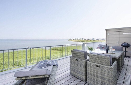 Bienvenido a este exclusivo apartamento de vacaciones en la localidad de Olpenitz, en el mar Báltico, a sólo 20 metros del agua, directamente a orillas del brazo Schlei del mar Báltico. El apartamento se distribuye en dos plantas (primer y segundo piso) y ha sido amueblado con muebles de lujo seleccionados en estilo escandinavo. Tan pronto como entres, serás recibido por un ambiente acogedor. Las ventanas panorámicas del comedor, el dormitorio y el espacioso baño le ofrecen una impresionante vista panorámica de los veleros que pasan y del pintoresco estuario. La gran terraza ofrece el lugar perfecto para relajarse y disfrutar de las vistas al agua. También podrá experimentar la belleza del entorno desde las ventanas panorámicas del salón. Una chimenea no sólo aporta comodidad al salón, sino que también crea una atmósfera cálida y acogedora. También hay un segundo balcón a su disposición, que ofrece vistas a la vegetación. Lo más destacado de este apartamento le espera en la planta superior: un baño de bienestar que impresiona con bañera de hidromasaje, ducha de efecto lluvia y una sauna finlandesa privada de cristal con vistas al agua. Aquí podrá relajarse perfectamente y dejar atrás la vida cotidiana. En la misma planta se encuentran los dos dormitorios, que impresionan con cómodas camas dobles, amplio espacio de almacenamiento y fantásticas vistas al agua o al campo. Este elegante apartamento ofrece espacio para hasta 4 personas gracias a una cama supletoria.