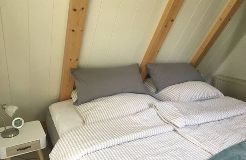 Special freestanding A-frame house with plenty of greenery and breath-taking views. Quietly located in a cul-de-sac and just a few minutes’ walk to the “Großes Meer”.