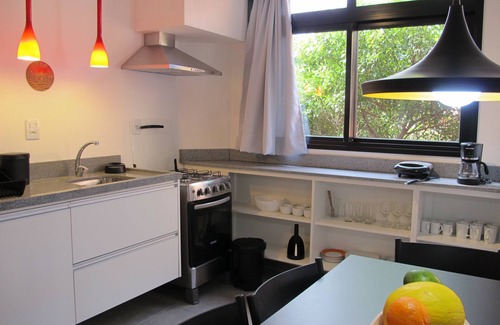 Apartamento espacioso, luminoso y aireado, ubicado en la zona céntrica de Garopaba, en una calle tranquila, a 100 metros de un supermercado, tiendas y restaurantes, y a 600 metros de la playa principal de Garopaba. Con una habitación doble cerrada y un salón integrado con la cocina, el apartamento tiene capacidad para 4 personas (2 sofás cama en el salón) y aire acondicionado frío/calor en todas las habitaciones. Terraza panorámica privada con barbacoa. Wi-Fi en todas las estancias.