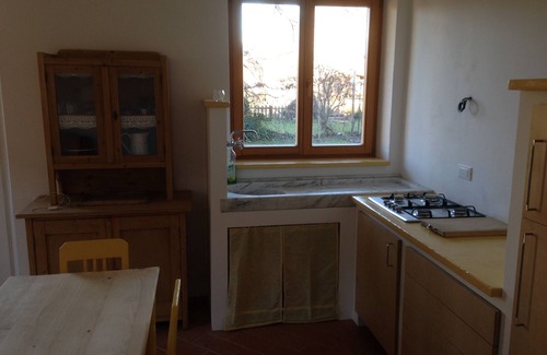 El apartamento Alessio se encuentra dentro de una casa de campo rodeada de un gran cultivo de manzanas.