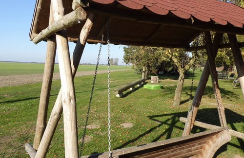 La casa de campo de 4 estrellas (DTV German Tourism Association) y la casa señorial restaurada se dividen en tres casas adosadas de alta calidad: la Casa Oeste, la Casa Este y la Casa Intermedia. Cada casa consta de dos apartamentos superpuestos e independientes: el apartamento de la planta baja y el apartamento de la galería en el 1er piso. Ambos apartamentos están conectados a través de los suyos, fuera de los apartamentos, pero dentro de la casa señorial yaciendo escaleras. Se puede ocupar una casa con un total de 8, un apartamento de 2 a 4 personas, se puede solicitar una cama extra. Todos los apartamentos también se pueden alquilar individualmente. Los apartamentos están decorados al estilo de la década de 1900, pero con la comodidad de hoy. ¡El ambiente especial y la atención al detalle te inspirarán! Las amplias habitaciones con mucha luz natural y galerías abiertas e inundadas de luz le brindan una sensación de bienestar de inmediato. Tienes a tu disposición tecnología moderna. Acceso Wi-Fi en la casa, radio y TV satelital completan la decoración. Las instalaciones sanitarias ofrecen el máximo confort: los exclusivos baños blancos de diseño (homenaje de Villeroy & Boch y accesorios diseñados por Phillip Starck) poseen saunas en los apartamentos en la planta baja y en la casa del entrenador le ofrecen un placer especial de vacaciones. En las noches frescas, disfrute de la chimenea y en los días cálidos de verano, la barbacoa en el patio. Los niños son bienvenidos, juegan al fútbol lejos de las "áreas de descanso", se encuentran en el trampolín o en el granero de juegos, tenis de mesa, futbolín o trampolín de interior, y se garantiza una salida.