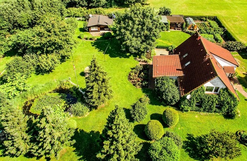 Las dos viviendas independientes, la casa y el apartamento, que se encuentra en un terreno de 2.500 m² cerrado privado con un aparcamiento seguro para coches y bicicletas refugio en el extremo más alejado del pueblo en una zona tranquila en la isla de Rügen. La propiedad ofrece parecido a un parque al lado del estanque de peces, barbacoa y Räucherplatz también un montón de espacio para relajarse y tomar el sol sin ser molestados (también sigue estando disponible). Bicicletas y barbacoa se pueden alquilar por un precio.