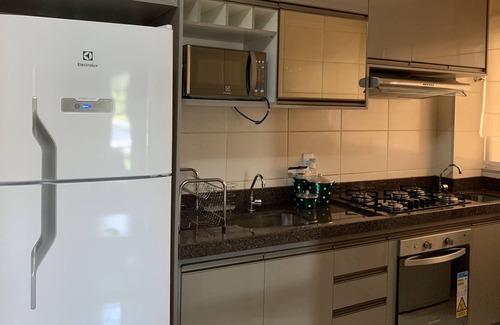 Nuevo apartamento con cama queen box en una de las habitaciones y en las otras dos cómodas camas individuales, una mesa de comedor y una cocina totalmente diseñada con cubiertos, utensilios de cocina, licuadora, exprimidor y vajilla, tiene un horno eléctrico, microondas , cocina con estufa y refrigerador, en la sala de televisión una televisión inteligente con wifi y televisión por suscripción también tiene un garaje para un automóvil, piscina en el condominio, campo de fútbol, área de barbacoa y senderismo.