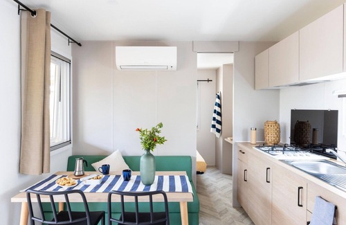A sólo 100 metros de la playa de arena privada, el complejo tiene una ubicación tranquila a las afueras de Marina di Montalto, a unos 4 km del centro: ideal para familias, turistas activos y aquellos que buscan relajarse. La propiedad ofrece 113 bungalows y 108 apartamentos, un supermercado, un parque infantil y un jardín. Hay conexión Wi-Fi disponible por un suplemento y el aparcamiento es gratuito. El alojamiento cuenta con una cocina abierta con vitrocerámica, nevera/congelador y una cómoda zona de estar con TV. La sala de estar y dormitorio está equipada con una cama doble, y también hay un dormitorio independiente con dos camas individuales. El baño dispone de ducha, lavabo, inodoro, bidé y secador de pelo. Las instalaciones incluyen aire acondicionado, una terraza privada con muebles de jardín y una plaza de aparcamiento. Los servicios incluidos incluyen una piscina panorámica, actividades deportivas como tenis, voleibol de playa y piragüismo, así como animación y cuidado de niños (15.06.–08.09.). El servicio de playa está incluido para ciertas categorías, de lo contrario es de pago. Actividades de ocio como deportes acuáticos, tenis de mesa y masajes (de pago) completan la oferta. Se puede reservar media pensión o pensión completa y hay un bar en la playa.