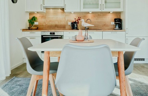En este apartamento para familias podrás disfrutar del windsurf, del surf y de mucho más a muy poca distancia. El alojamiento dispone de aparcamiento en las instalaciones. Además, estarás a 5min en coche de Playa Familienlagune Perlebucht y a 8min en coche de Playa de Büsum.