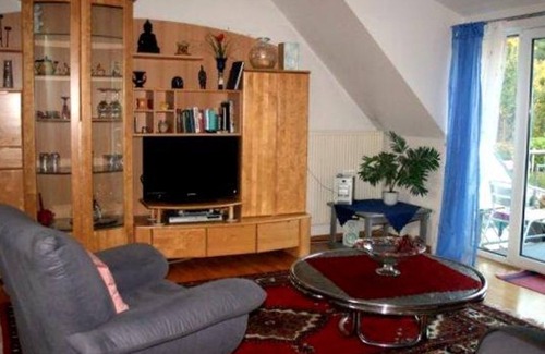 Nuestro apartamento está ubicado en el piso superior y está destinado a dos o tres personas. Se extiende sobre 65 m² y consta de sala de estar, comedor, cocina, 2 dormitorios, baño con bañera y cabina de ducha. La cocina está totalmente equipada con cafetera y cafetera espresso, horno, microondas y lavavajillas. También están disponibles TV vía satélite, estéreo y reproductor de DVD. Aquí tienes la oportunidad de retirarte a tu propio balcón al jardín. Por supuesto, el jardín se puede compartir con un gran césped.