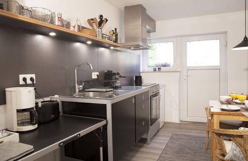 El apartamento está ubicado en el ala lateral del edificio total de 750 m² de área utilizable. El apartamento es ideal para una persona, pero tiene capacidad para 2 personas y tiene 1 dormitorio con 1 cama de 1,40 my 1 baño. La cocina tiene nevera-congelador, cocina de 4 placas, horno. Tostadora, cafetera, máquina de espresso, hervidor de agua. Como regla general, sal, pimienta y diversas especias están disponibles. El café y el azúcar siempre deben estar allí. El agua mineral está en la nevera.