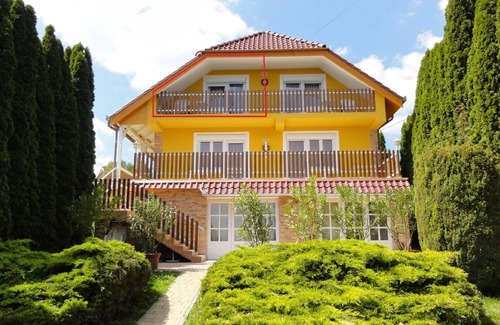 Su propiedad de vacaciones: Casa de apartamentos situada en una tranquila zona verde de la ciudad balneario de Zalakaros. Esta casa está situada en un pequeño parque de 1500 metros cuadrados, a sólo 550 metros del balneario y piscina de aventura. Desde todos los pisos se puede disfrutar de una vista de los encantadores alrededores, y con buen tiempo incluso se puede ver el lago Balaton. Hay dos aparcamientos vigilados: uno delante y otro detrás de la casa. Detrás de la casa hay una zona de barbacoa con cómodos bancos.