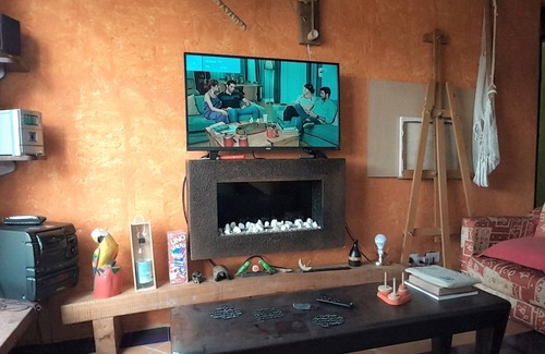 Es un apartamento cálido, confortable y acogedor, con un ambiente rústico lleno de detalles. Ubicado en el pueblo, a 3 manzanas del parque principal. Detrás del edificio esta la placa polideportiva y lindando con ella esta el parque lineal de la quebrada la Agudelo, en la cual se puede pescar trucha. En las cercanías del pueblo hay cascadas, embalses, senderos ... es una zona hermosa y natural ....