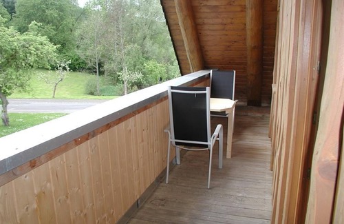 El apartamento está ubicado a los pies del Erbeskopf, directamente en el Parque Nacional Hunsrück-Hochwald, entre Idar-Oberstein y Trier, en una casa de madera canadiense de tronco redondo. El apartamento puede ser utilizado para 2 a un máximo de 4 personas. La planta baja tiene una entrada independiente, un pasillo, una cocina con comedor, un aseo y una terraza parcialmente cubierta en la zona de entrada. En la planta superior hay una amplia sala de estar con sofá cama, un baño sin barreras con ducha y retrete, un dormitorio con balcón cubierto. La escalera de arriba está equipada con un elevador de escaleras. El maravilloso paisaje, el estilo especial de la casa de madera y los preciosos muebles lo invitan a relajarse. La práctica naturopática en la casa le ofrece la oportunidad de concertar citas de terapia y tratamientos de bienestar.