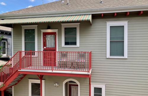 La propiedad fue remodelada para contener 2 apartamentos. Esta lista es para un apartamento de 570 pies2 totalmente amueblado ubicado en el segundo piso con entrada privada en la parte trasera de la casa principal en una cubierta elevada.
