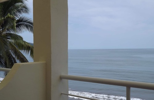 Este apartamento tiene una terraza con vista al mar, 2 habitaciones, 1 ½ baños, sala, comedor, cocina totalmente equipada, nevera grande, aire acondicionado y TV.