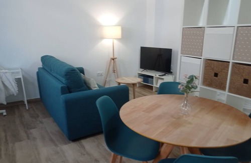 Tiene una cama de 1,50 para dos personas y un sofá cama doble, con zona de comedor y TV Smart de 43". El baño es con plato de ducha , y la cocina está perfectamente equipada con todo lo necesario para la comodidad del cliente (lavavajillas, lavadora, secadora, horno, microondas, frigorífico, cafetera, tostadora, menaje...etc.)