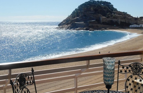 Estupendo piso de vacaciones en primera línea de playa con una preciosa terraza donde disfrutar de una copa de vino y de la estupenda vista del mar y de la muralla que rodea la aldea, que se ilumina por la noche.