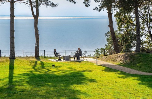 ¡El "Oase am Haff" te da la bienvenida a la soleada isla de Usedom! Mar. Resto. Experiencia. Nos complace que pase sus valiosos días de vacaciones con nosotros. Nuestro complejo vacacional le ofrece lujo. Grandes terrazas ofrecen un panorama maravilloso directamente en la laguna de Szczecin. Un mar más grande que el lago de Constanza. La fantástica vista del sol, el agua con gas te encantará. Todos los apartamentos y apartamentos con terraza son de alta calidad y modernos. Amplios jardines con pasillos ajardinados rodean nuestras casas de vacaciones en una gran área al aire libre. Las terrazas separadas con asientos en los acantilados lo invitan a quedarse. Puede experimentar bienestar, estado físico, juegos y socialización en nuestras salas comunes, cuyo equipo está disponible de forma gratuita. También ofrecemos masajes profesionales que puedes reservar con nosotros. Un gran parque infantil al aire libre con torre de escalada, teleférico y equipo de juego lo invita a las aventuras de sus hijos. Hay un campo de fútbol fuera de las instalaciones. Nuestro callejón de petanca o la sala común de fitness y tenis de mesa están disponibles para sus experiencias deportivas. Puede llegar al restaurante "The Red Baron", que dirigimos, en un estilo relajado al estilo del romance de aviación. Se encuentra en la espectacular exhibición de aviones "Hangar 10" y en el aeropuerto natural de Heringsdorf. Buena comida y bebidas seleccionadas te esperan allí. En el bistró de nuestro restaurante "The Red Baron", recibe panecillos recién horneados o pasteles caseros todos los días, que puede disfrutar con una taza de café en las terrazas del restaurante. Además del café, la leche y las bebidas, el mini mercado asociado también ofrece productos para el cuidado. Tenemos un alquiler de bicicletas que también ofrece bicicletas eléctricas y scooters. Puede traer sus bicicletas con usted y guardarlas de manera segura en las salas con llave para bicicletas. Tu perro es bienvenido con nosotros. En nuestras instalaciones le pedimos que correa a su perro. Fuera de nuestras instalaciones, amplios campos y prados ofrecen la posibilidad de una carrera segura y libre. A la playa única del mar Báltico de Usedom se puede llegar en coche en un máximo de 15 minutos a través de los famosos baños imperiales Bansin, Heringsdorf y Ahlbeck, no muy lejos de nosotros. Llegará al campo de golf Korswandt en aproximadamente la mitad del camino. Secciones más tranquilas de la playa están en Swinoujscie. Podemos recomendar especialmente una visita al pintoresco pueblo pesquero de Kamminke con su playa en la costa de Haff. El restaurante al aire libre en el puerto ofrece cocina de pescado fresco y un lugar frente a impresionantes puestas de sol.