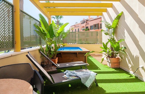 Situado en San Roque, este apartamento frente al mar de 300 m² acoge hasta 7 huéspedes con 3 dormitorios, salón y 2 baños. Disponéis de una cocina privada bien equipada, aire acondicionado, Wi-Fi apto para videollamadas, TV con vídeo bajo demanda y espacio de trabajo. También encontraréis lavadora, secadora, acceso por ascensor y videoconsola para entretenimiento.