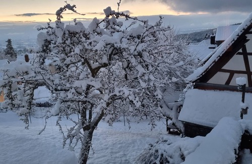 In the Hochtaunus Nature Park in Falkenstein, this freshly renovated 65 m² apartment awaits you on the first floor, accommodating up to three guests. It offers two bedrooms—one with a spacious box spring bed and one with a cozy single bed—as well as a bathroom with a walk-in rain shower and a direct view of the Frankfurt skyline. The private, fully equipped open kitchen features an induction stove, oven, dishwasher, coffee and espresso machine, toaster, and blender. Amenities include Wi-Fi for video conferences, TV, sound system, baby cot, and highchair for your comfort.